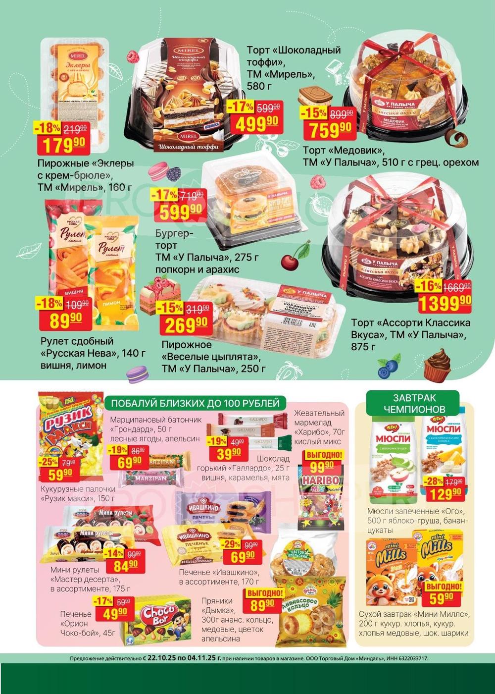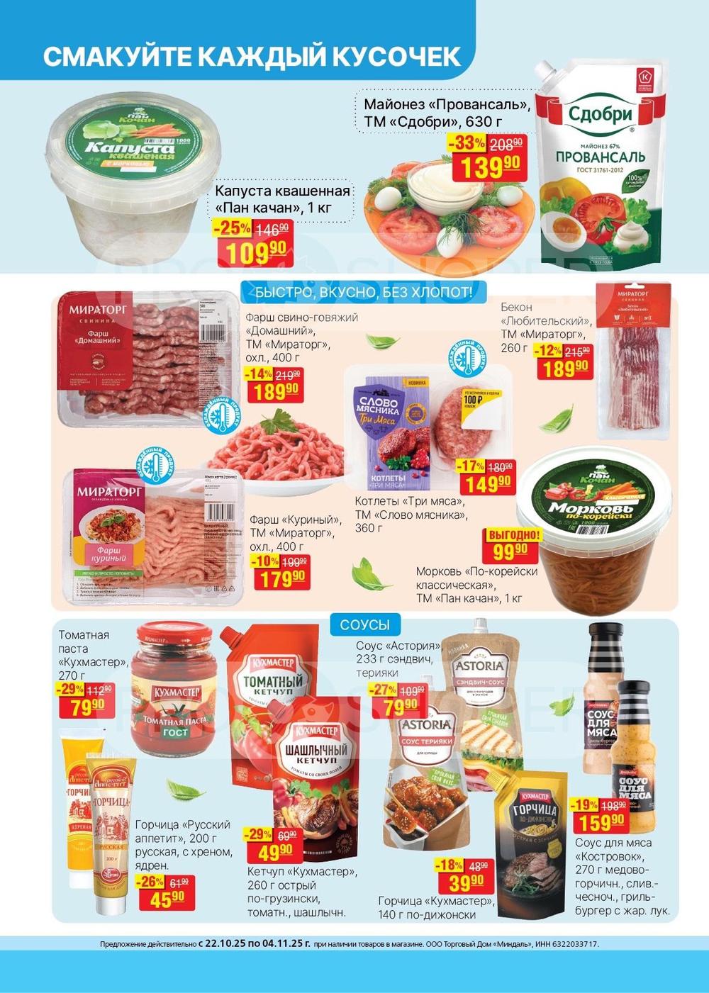 В магазинах «Миндаль» Вы всегда можете купить свежие кисло-молочные продукты, мясные изделия и хлебные изделия из собственной пекарни.